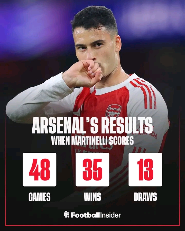More importantly, his goals bring stability and confidence to an Arsenal side that has ambitions of consistently challenging for titles.For Arsenal fans, the pattern has become clear: when Martinelli finds the net, the team walks away unbeaten.