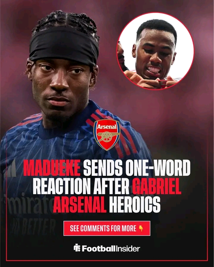 Watching from the sidelines due to injury, Madueke shared in the celebrations remotely. He took to social media immediately after the match, hailing Gabriel as a “monster” and posting an image of the centre-back celebrating the final whistle. Though ruled out for several weeks, Madueke’s message reflected the growing bond within the squad.