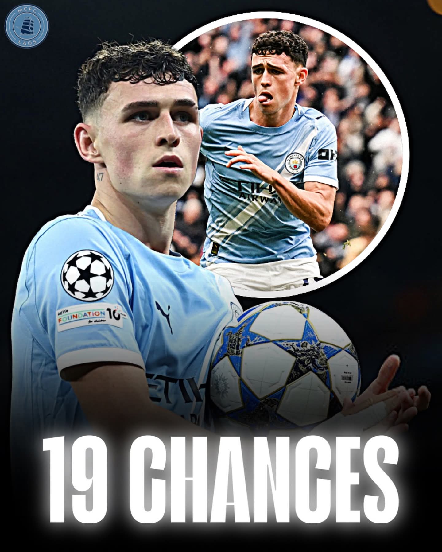 Phil Foden has created 19 chances across all competitions this season, with 6 in the #PL and 10 in the #UCL and 3 in the EFL Cup.