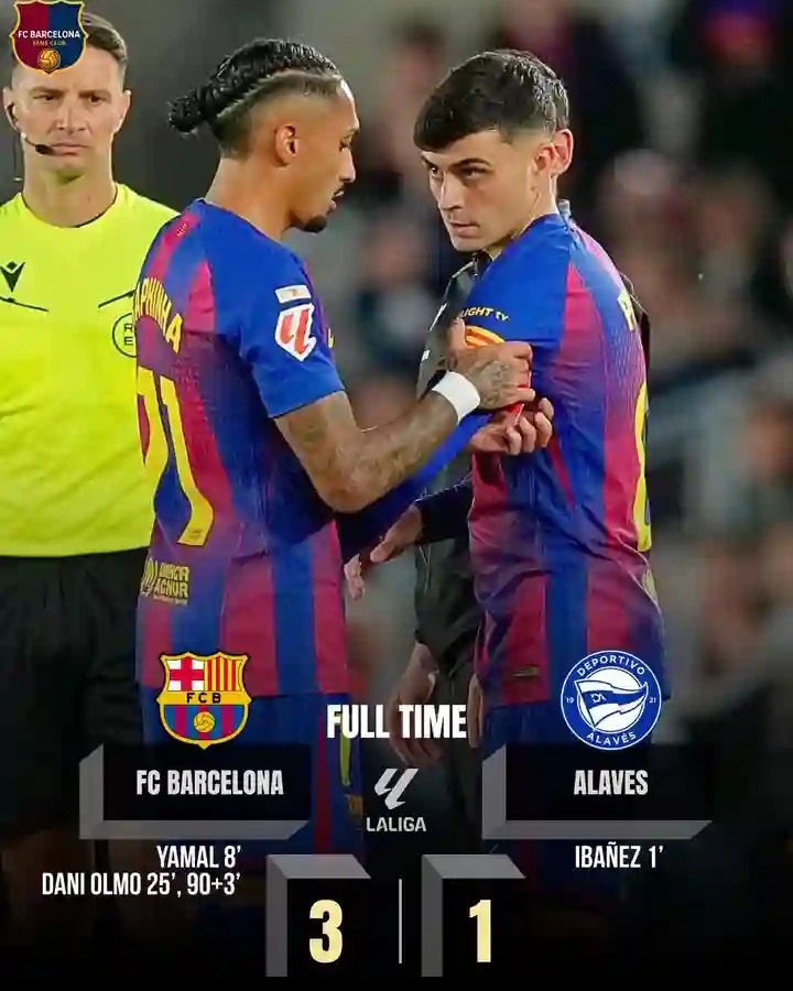Despite the scoreline, Alavés made the contest competitive. Their determined pressing and physical approach forced Barcelona to remain focused throughout. The visitors managed to pull one goal back, but the defensive structure led by Araújo and Cubarsí ensured the match never slipped out of the home side’s control.