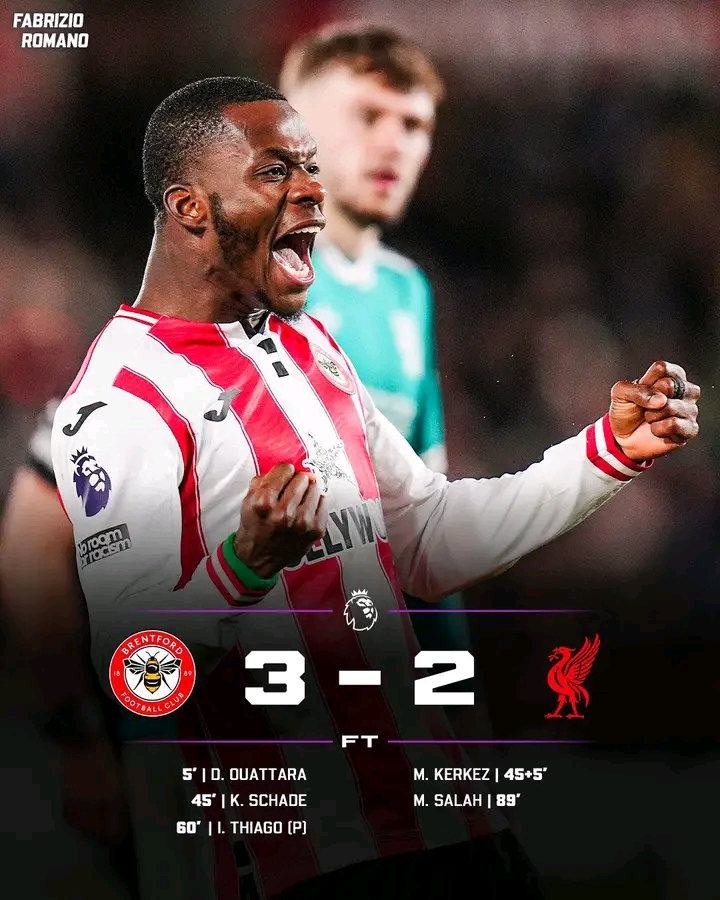In a dramatic Premier League encounter, Liverpool suffered a crushing 3-2 defeat to Brentford, despite Mohamed Salah’s late goal in the 89th minute. The loss marks another blow for Jurgen Klopp’s side, as they continue to struggle with consistency this season.