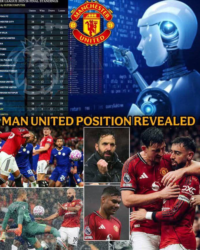 BREAKING NEWS: Supercomputer that predicted Liverpool to win the league last season has again predicted where Manchester United will finish on the table this season – Big congratulations to Man United fans