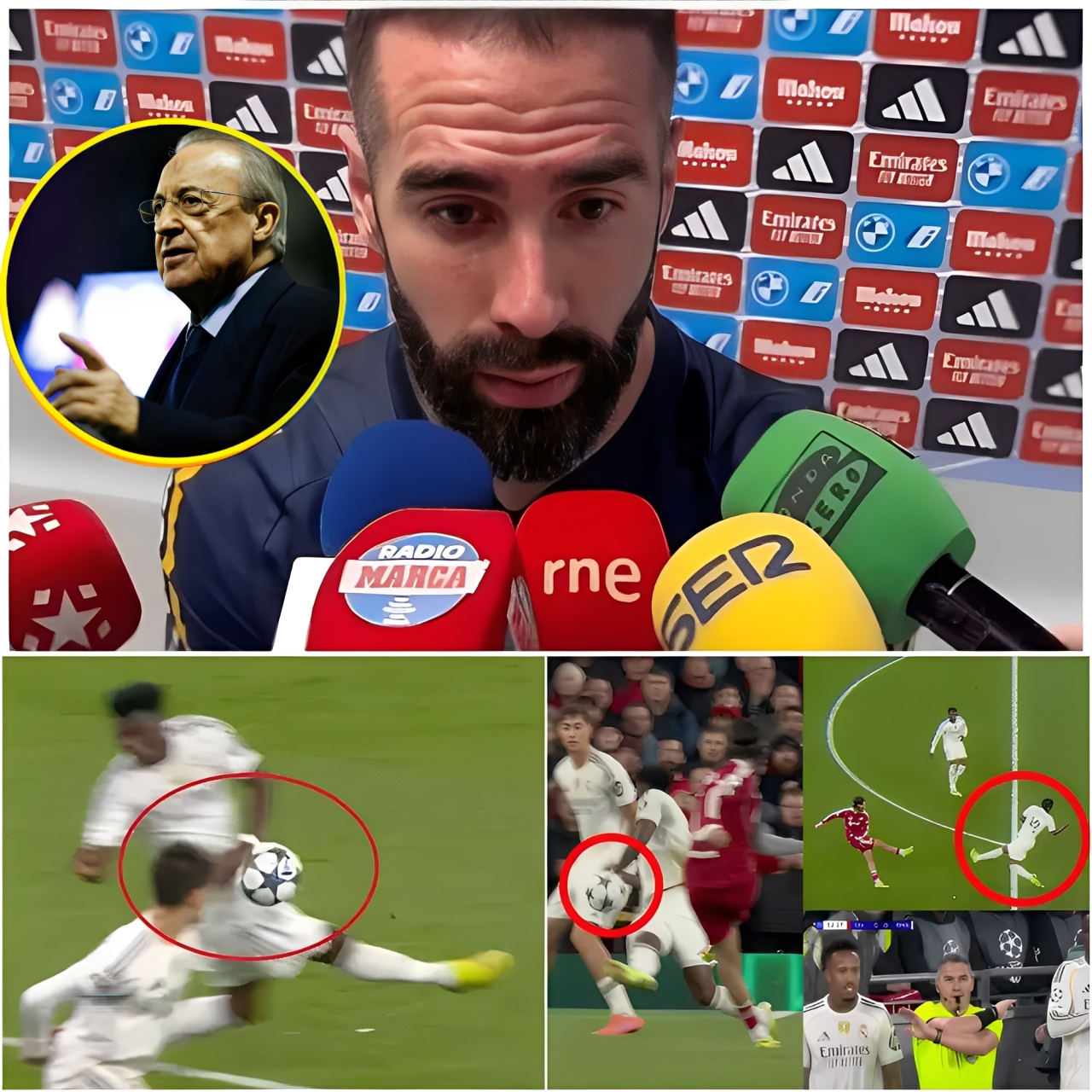 Dani Carvajal, a historic figure at Real Madrid, has set the club’s internal dynamics ablaze with a shocking statement aimed at the team’s management and players. In a private meeting behind closed doors, the Spanish defender issued a direct ultimatum to president Florentino Pérez, demanding the immediate expulsion of a key player he blames for the team’s recent humiliation against Liverpool. While Carvajal refrained from naming names, his sharp criticism clearly targeted Vinícius Júnior, whose recent performance on the pitch has raised serious concerns.