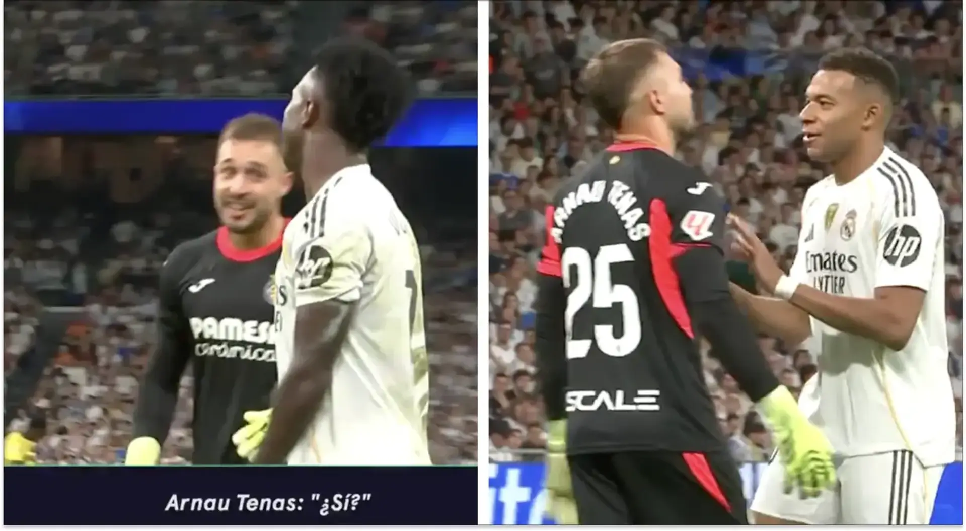 As Vinícius placed the ball on the spot, Villarreal goalkeeper Arnau Tenas decided to play mind games. With a smirk and a few carefully chosen words, he attempted to throw the Brazilian off his rhythm. Tenas, who has earned a reputation for psychological tactics, approached Vinícius, muttering provocations meant to unsettle him. The atmosphere at the Bernabéu grew electric — tension thick enough to cut with a knife.