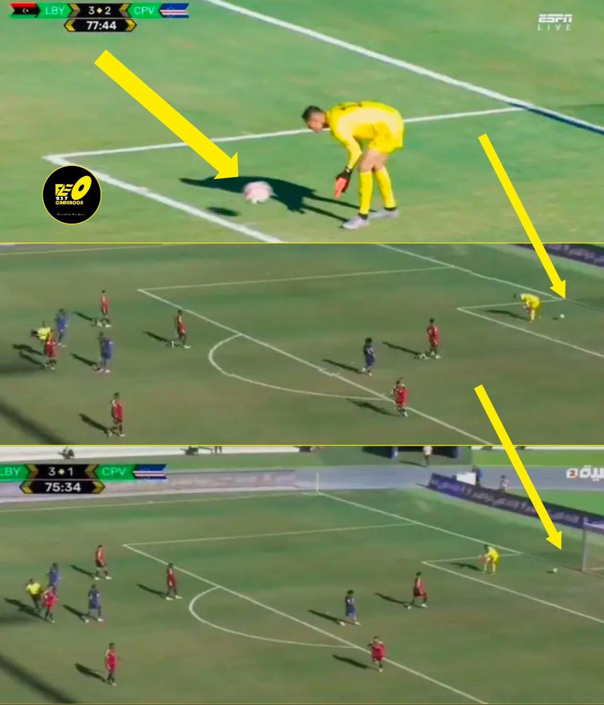 However, the routine instantly devolved into a state of total confusion and chaos. As the ball trundled towards him, the Libyan shot-stopper appeared to completely misjudge its speed, trajectory, or perhaps his own footing. In a split second that will likely haunt him forever, he failed to gather the ball. Instead of settling it or clearing it, he simply let it slip right through his legs.
