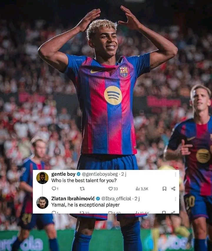 Zlatan Ibrahimovic has publicly praised Barcelona’s Lamine Yamal, describing the young forward as the best up-and-coming talent in world football. His comments underscore the growing recognition of Yamal’s potential among some of the game’s most influential figures.